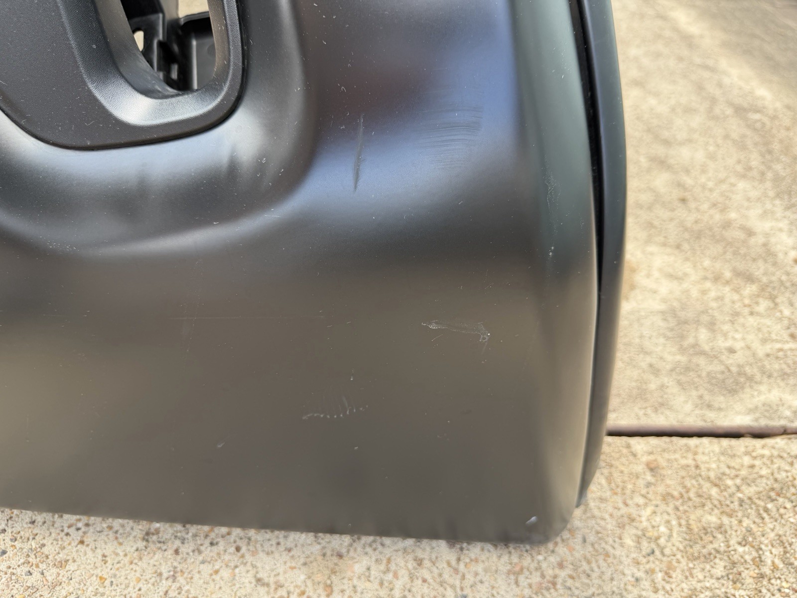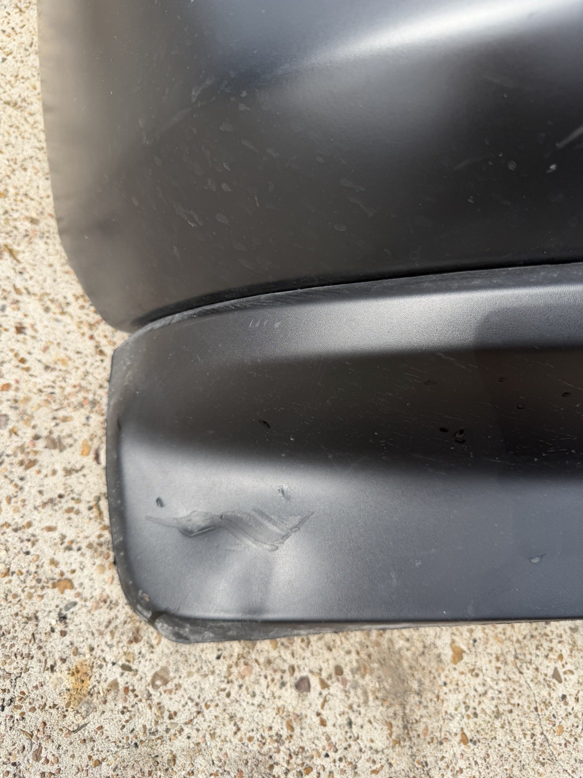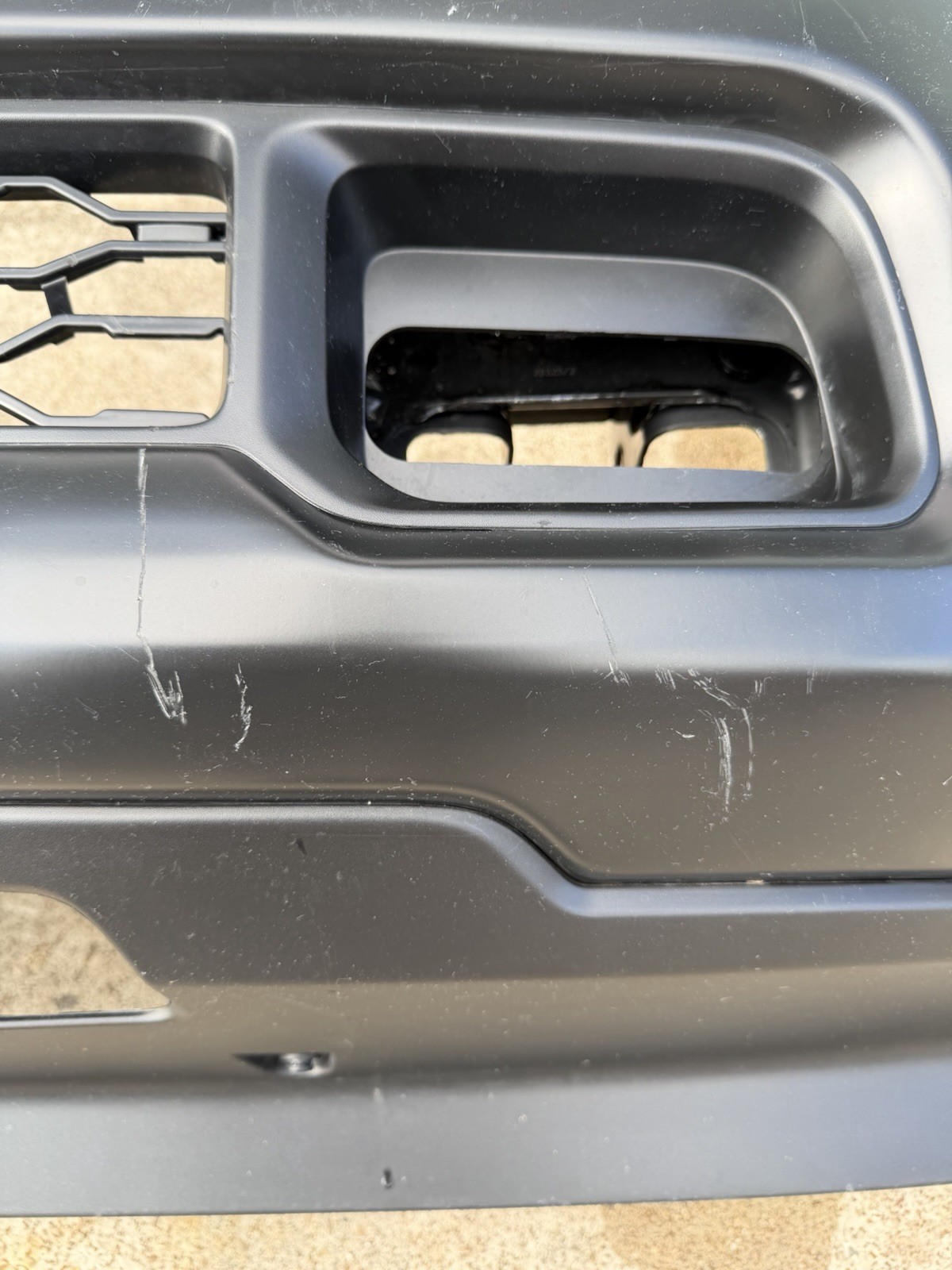 Bumper does not have any dents or dings on the surface. Has scratches / scuffs on the surface. Sold as is, please look at pictures before purchasing. Do not expect a new bumper at time of delivery / purchase as this is a factory take off.