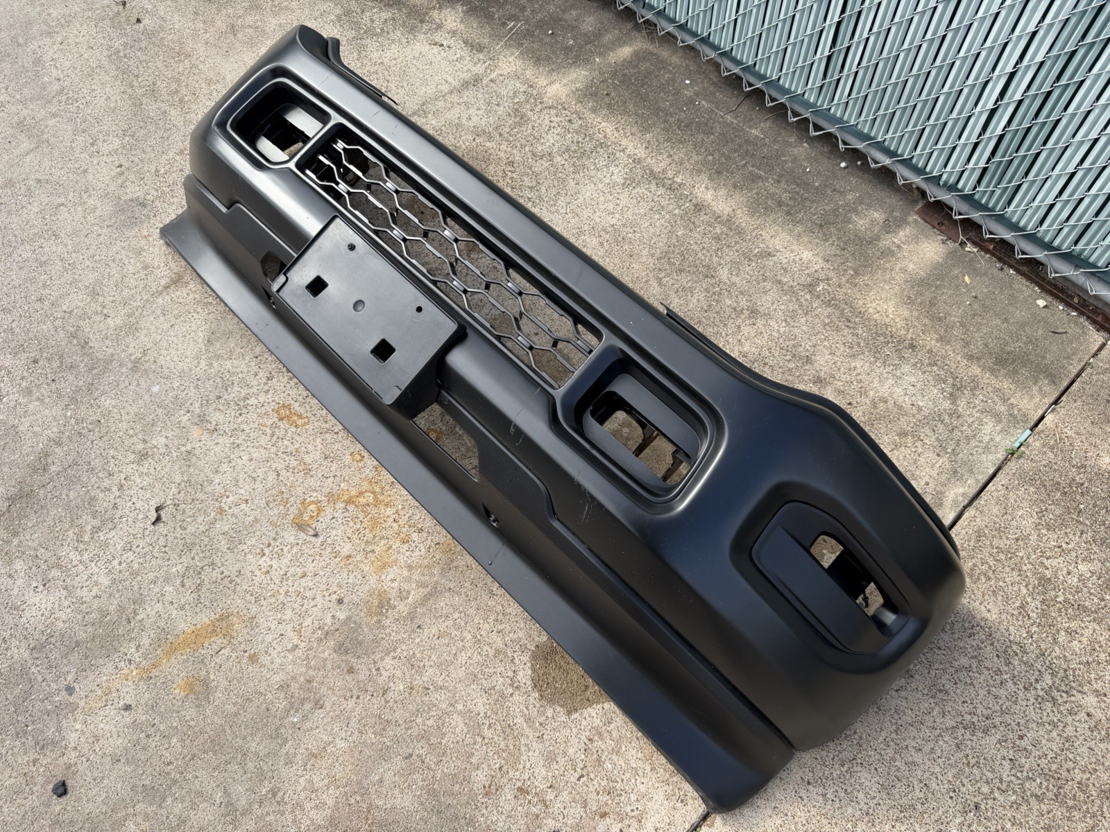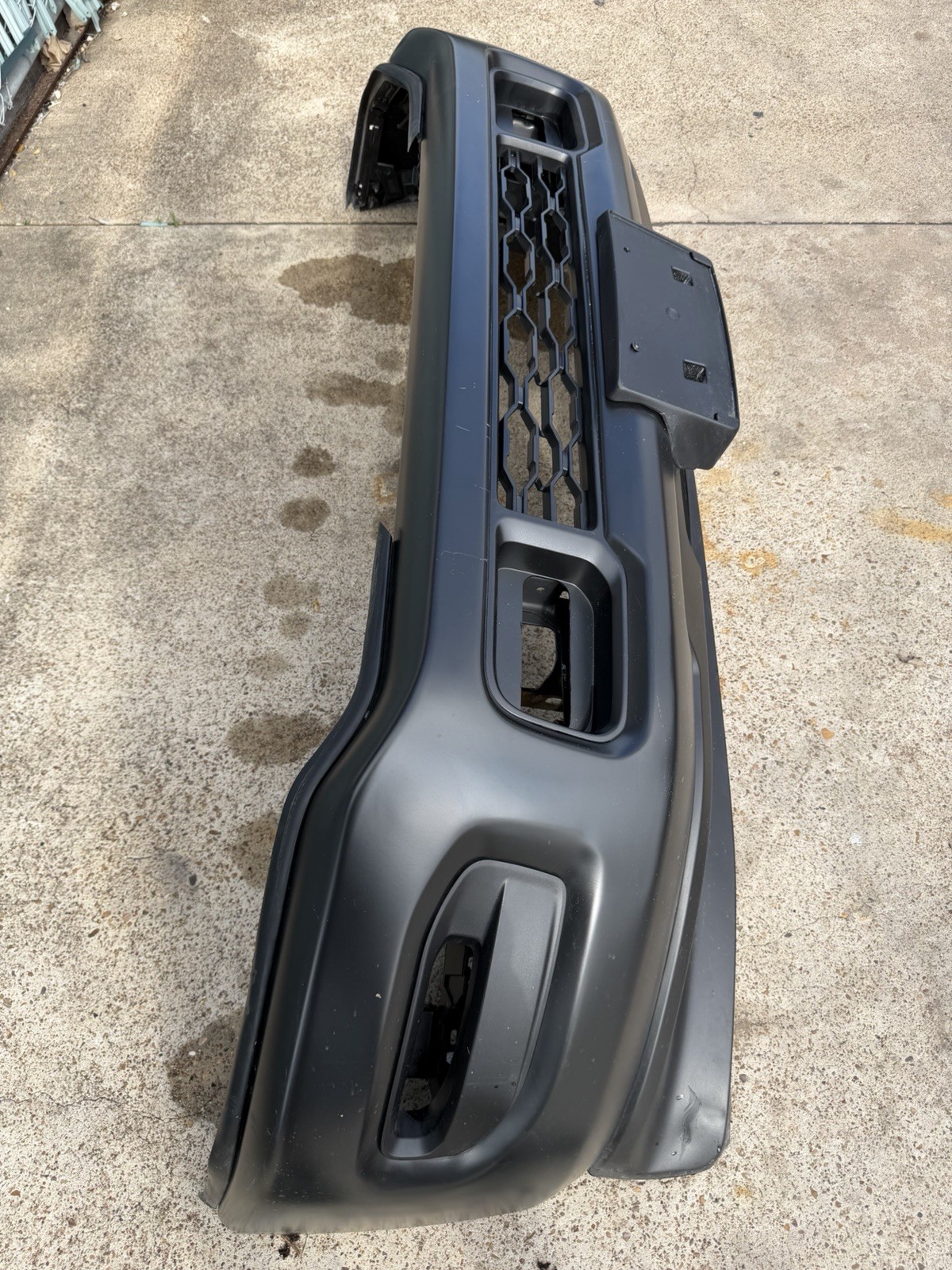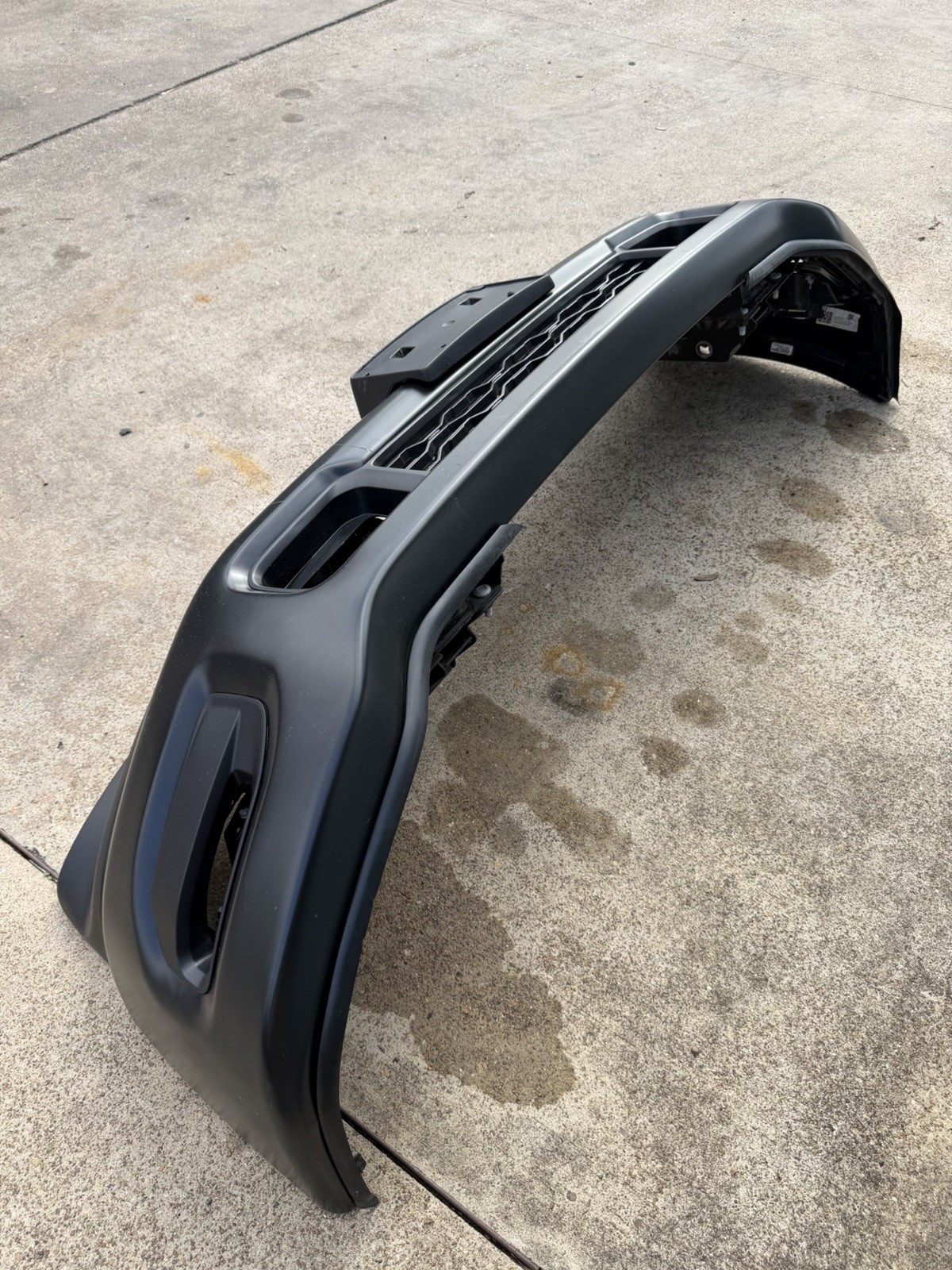 Bumper does not have any dents or dings on the surface. Has scratches / scuffs on the surface. Sold as is, please look at pictures before purchasing. Do not expect a new bumper at time of delivery / purchase as this is a factory take off.