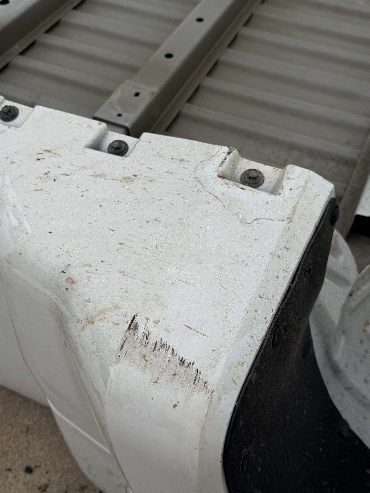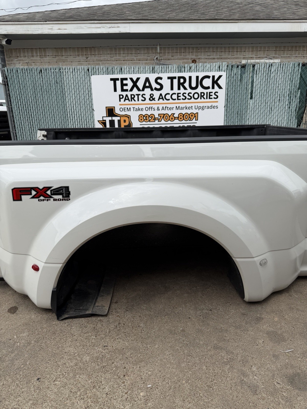 Take off bed in great condition, does have some scratches / scuffs on the surface. Flares are scuffed on the bottom side from storage & transport. Does not have any dents or dings. Bed has bed liner & hole for gooseneck. Do not expect a new bed at time of purchase