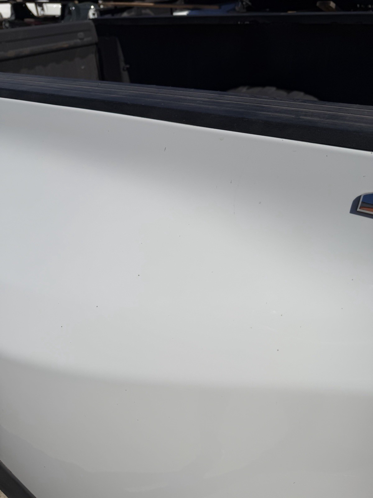 This bed is in good condition but It does have some flaws on it. Has some dings / dents on it, should be able to be pulled out. Has some scratches / scuffs and paint chips. Has 5th wheel holes. Please look at pictures before purchasing/offering, sold as is. Do not expect a new bed at time of purchase as this one has some flaws.