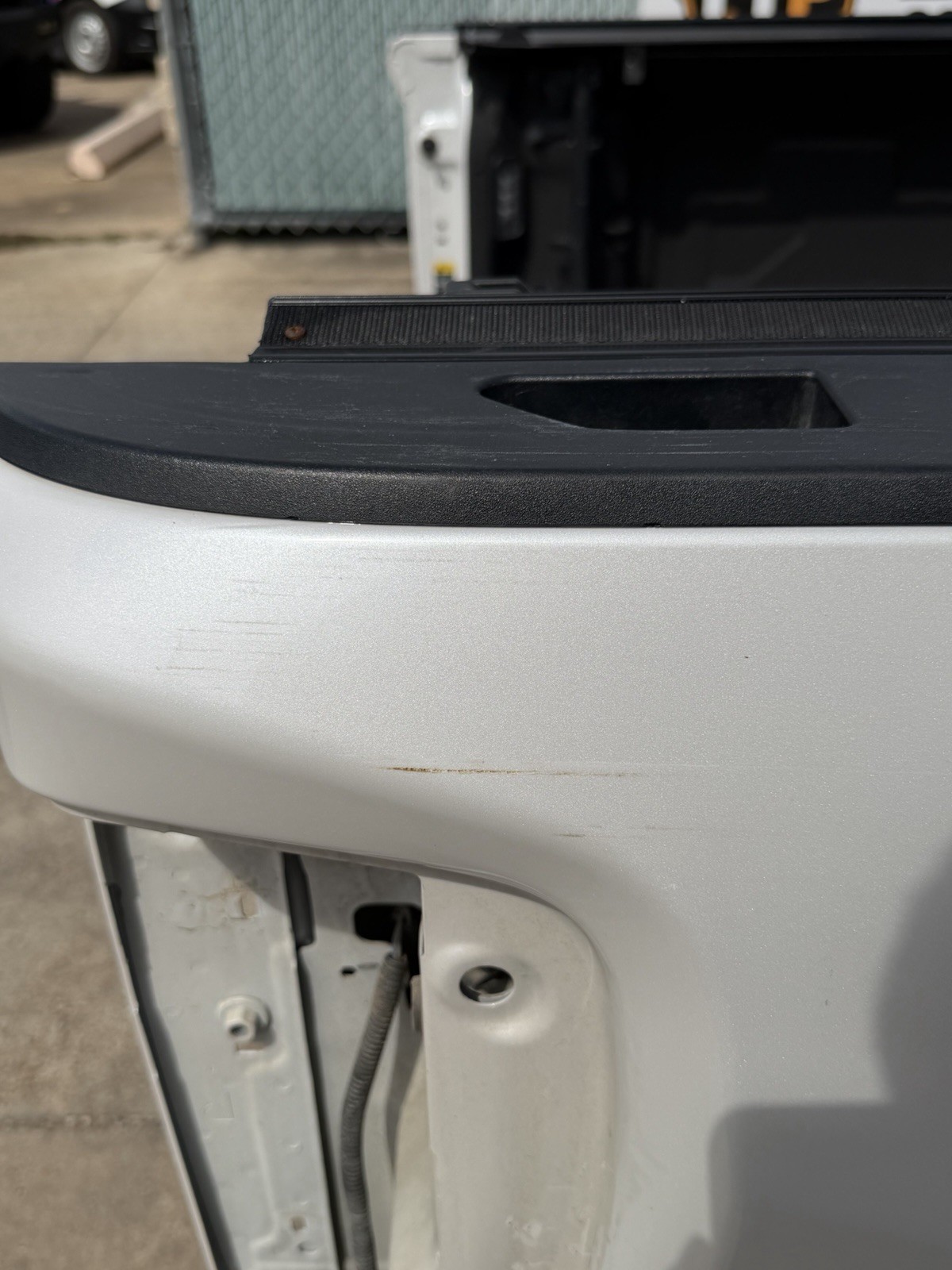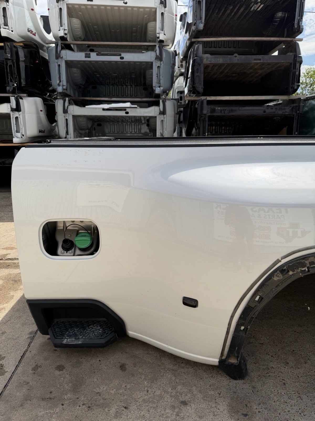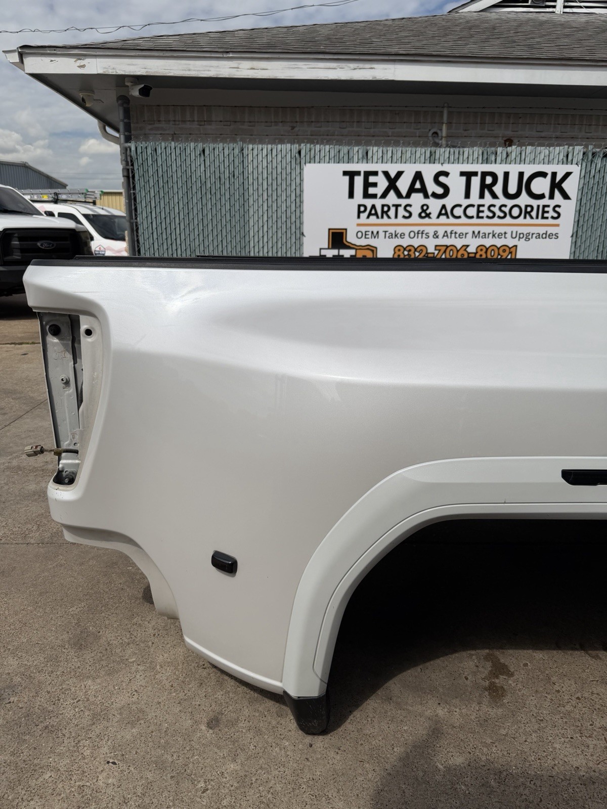 This bed is in good condition, but does have some flaws on it. Came off of a Denali. The plastic trim / flare on the driver side is not there. Gas cap is also missing. This bed has color matched plastic on the right side. Bed has some scuffs / scratches / paint chips. Please do not expect a brand new bed at time of delivery. This bed does not have any dents or noticeable damage to it. The bottom flares that the bed sits on will need to be replaced or bent in to shape.