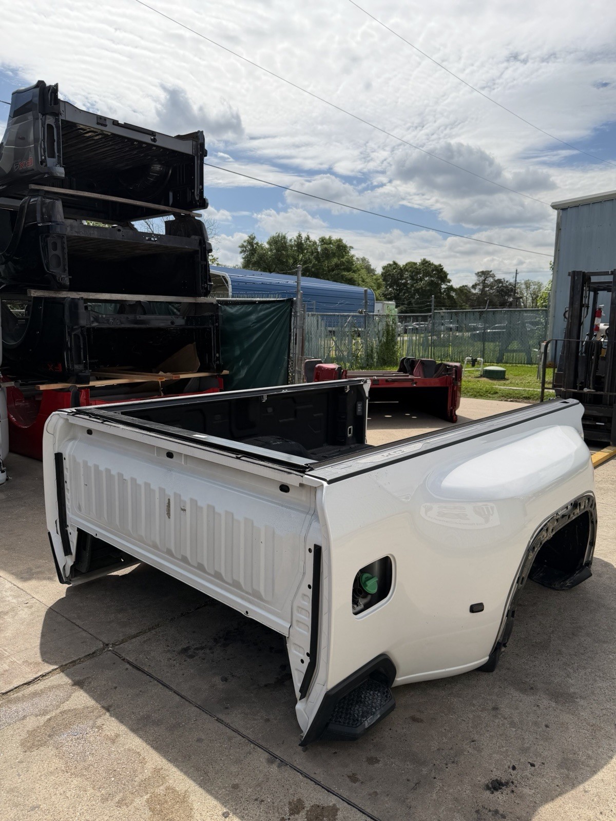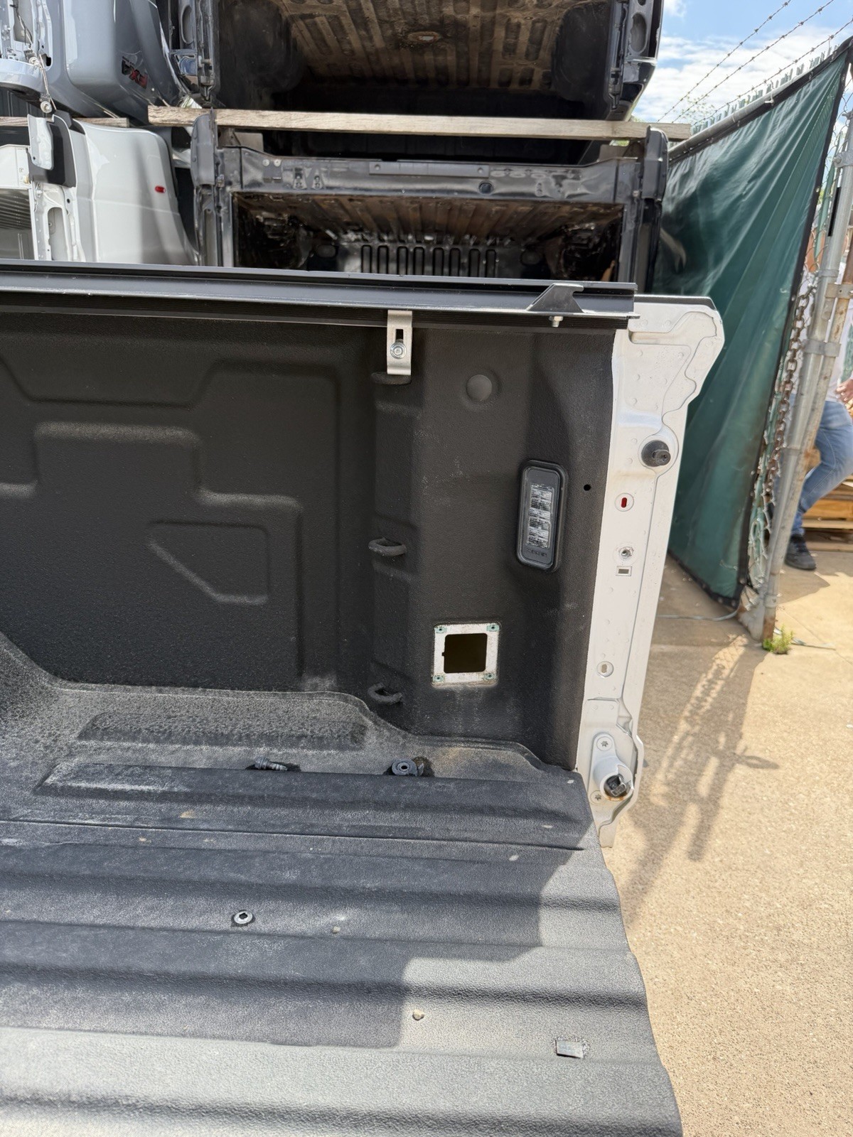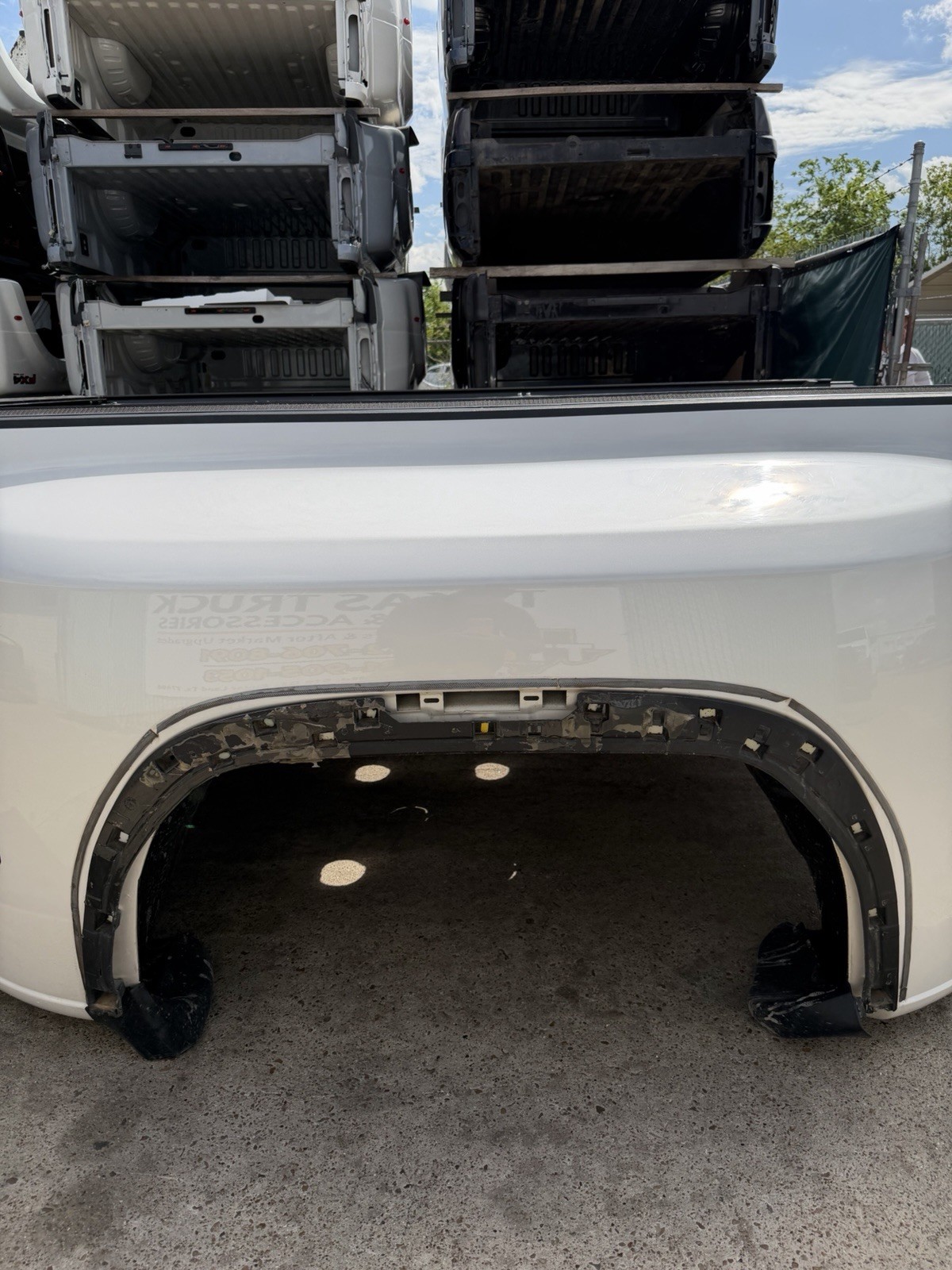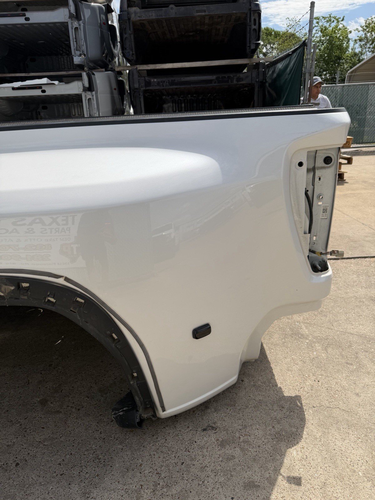 This bed is in good condition, but does have some flaws on it. Came off of a Denali. The plastic trim / flare on the driver side is not there. Gas cap is also missing. This bed has color matched plastic on the right side. Bed has some scuffs / scratches / paint chips. Please do not expect a brand new bed at time of delivery. This bed does not have any dents or noticeable damage to it. The bottom flares that the bed sits on will need to be replaced or bent in to shape.