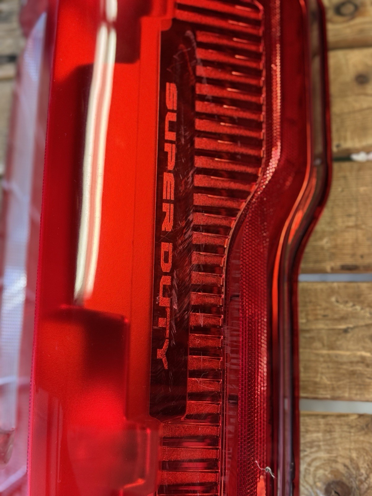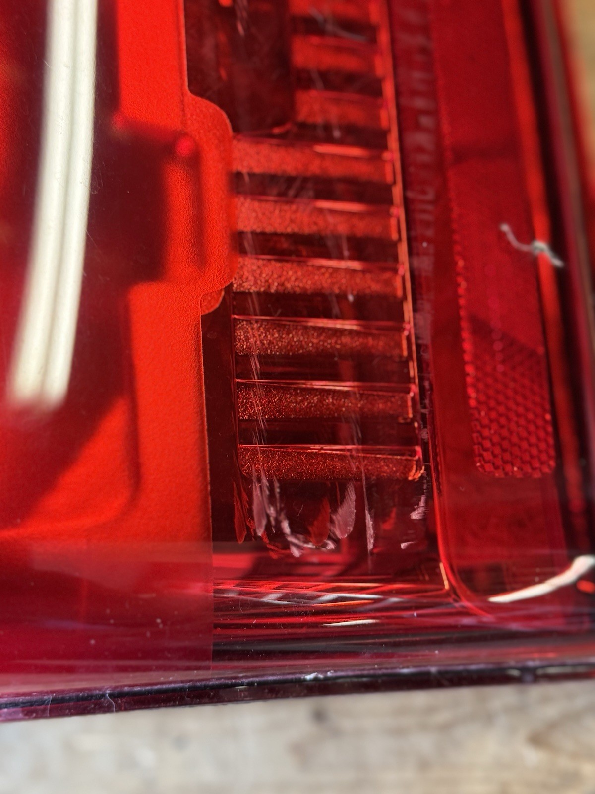 Has minor scuffs / scratches on the lens and surface that can be seen from a certain angle. Does not have any cracks or chips. Sold as is, please do not expect a new light at purchase as this is a factory takeoff. Please look at pictures before purchasing.