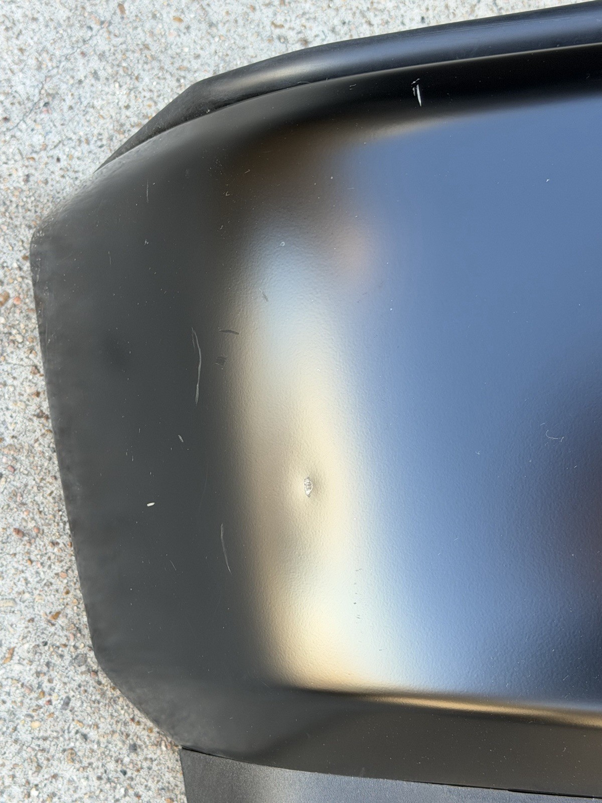 This bumper does not have any dents or dings on it, does have some scuffs and scratches on the surface from transport and storage. Please look at pictures before purchasing, do not expect a new bumper at time of purchase as this is a factory take off. Sold as is