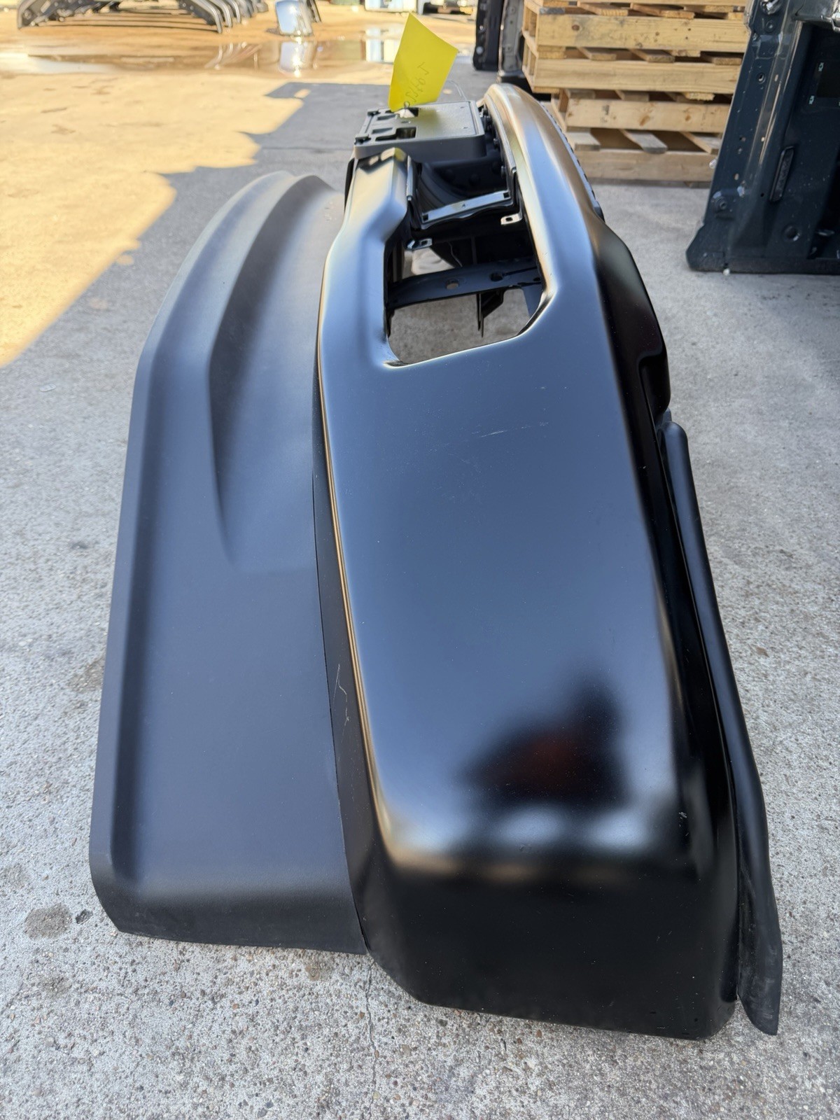 This bumper does not have any dents or dings on it, does have some scuffs and scratches on the surface from transport and storage. Please look at pictures before purchasing, do not expect a new bumper at time of purchase as this is a factory take off. Sold as is