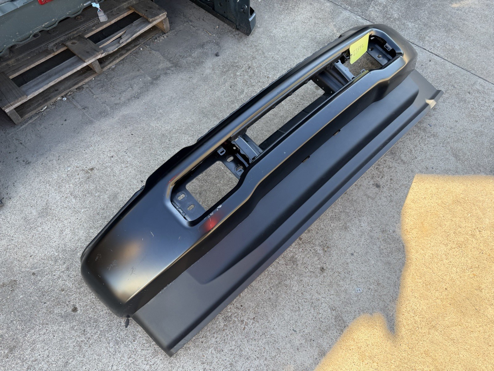 This bumper does not have any dents or dings on it, does have some scuffs and scratches on the surface from transport and storage. Please look at pictures before purchasing, do not expect a new bumper at time of purchase as this is a factory take off. Sold as is