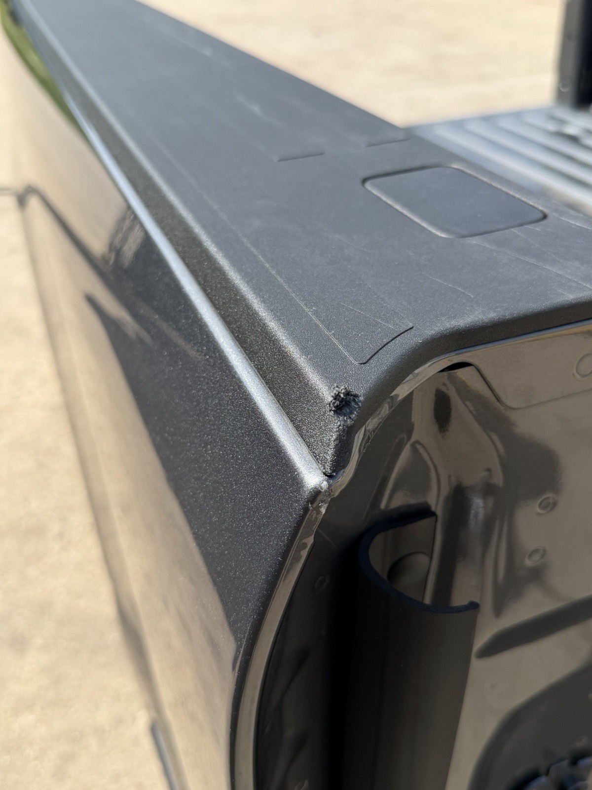 This bed is in excellent condition, does not have any dents or dings. Did not notice any scuffs or scratches. Back corners have some light scuffs on the plastic, but not too noticeable. Does not have bed liner. Sold as is, please look at pictures before purchasing. Do not expect a new bed at purchase.